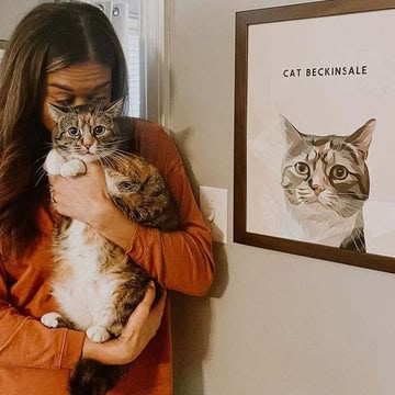Sentimientos felinos. La Sra. Beckinsale luce preciosa en su retrato de mascota personalizado con marco de nogal.