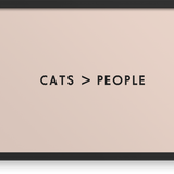 Para quienes saben que un ronroneo vale más que mil conversaciones… "Gatos > Personas" es la frase perfecta para expresar tu amor incondicional (y un poco sarcástico) por esos seres independientes, elegantes y absolutamente adorables.