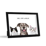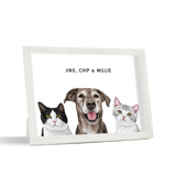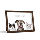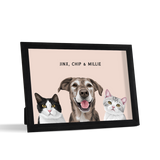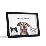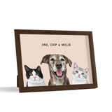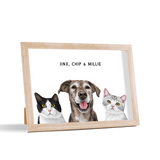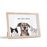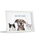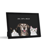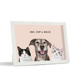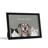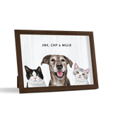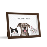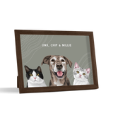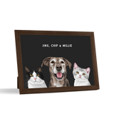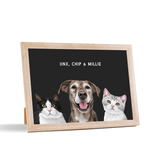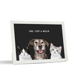 Los retratos de mascotas se imprimen en papel de calidad de galería y los componentes listos para colgar vienen preinstalados en el marco de alta calidad.