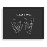 Los retratos de mascotas se imprimen en papel de calidad de galería y los componentes listos para colgar vienen preinstalados en el marco de alta calidad.