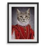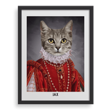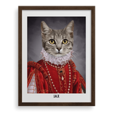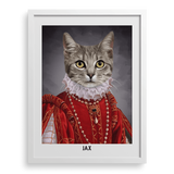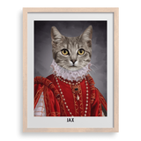 Celebra a tu mascota como verdadera nobleza con este retrato exclusivo titulado Su Alteza . Tu fiel compañero será inmortalizado con atuendos y ornamentos reales, como capas bordadas, coronas brillantes y detalles refinados que realzan su majestuosidad y prestigio.