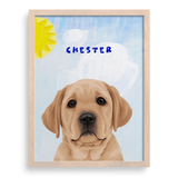 Agrega el nombre de tu cachorro, personaliza el estilo del retrato y elige tu marco y tamaño.