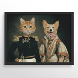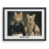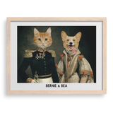 Convierte a tus mascotas en una pareja real con este retrato personalizado al estilo Duque y Duquesa . Elegantes trajes de época, detalles nobiliarios y poses distinguidas otorgan a tu dúo peludo un aire de majestuosidad y clase atemporal.