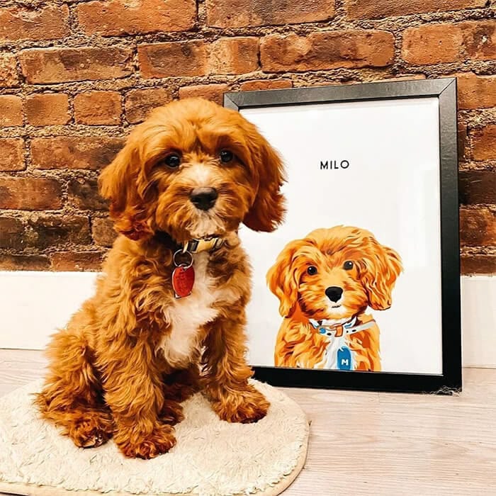 Nos encanta conocer a tu mascota! Imprimiremos su nombre en la obra final con nuestra fuente distintiva, ofrecemos tres opciones de color de fondo y dos opciones de marco llamativo (¡o sin marco!).