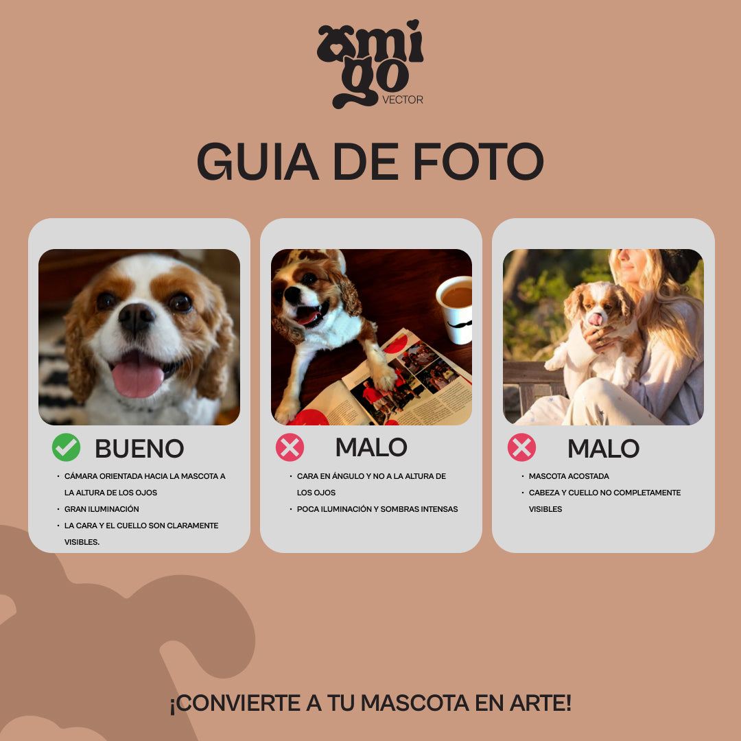 En Amigo Vector solemos realizar retratos de mascotas fallecidas, por lo que entendemos que no siempre es posible seguir todas las pautas recomendadas.