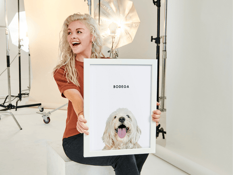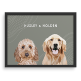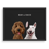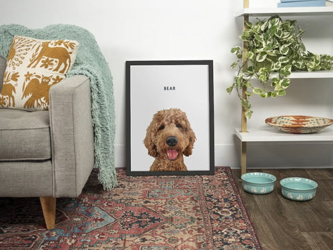 Los retratos de mascotas se imprimen en papel de calidad de galería y los componentes listos para colgar vienen preinstalados en el marco de alta calidad.