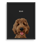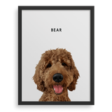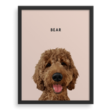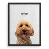 Agrega el nombre de tu cachorro, personaliza el estilo del retrato y elige tu marco y tamaño.